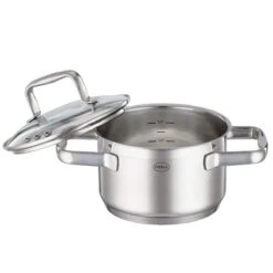 Het Franse topmerk Cristel ontwikkelde de lijn Castel’Pro voor gebruik in de professionele keuken zowel als thuis. Deze pannen zijn opgebouwd uit vijf verschillende lagen. Aan de buitenzijde zit een laag 18/0 edelstaal, gevolgd door een laag aluminium, een laag versterkt aluminium, een laag aluminium en aan de binnenzijde een laag 18/10 edelstaal. De pan heeft een dichtgelegde gietrand, waardoor de pan vaatwasmachinebestendig is. De gegoten roestvrijstalen grepen en stelen zitten met roestvrijstalen nagels aan de pan vast en geleiden weinig warmte. Door het gebruik van 18/0 staal zijn Castel’Pro pannen zowel geschikt voor alle warmtebronnen en om in de oven te gebruiken.