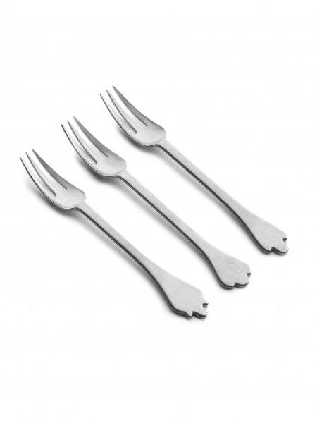 De Serax Merci Mix 1-2-3 tafelvorken zijn gemaakt van roestvrij staal dat een stonewash-behandeling heeft gehad. Elk van de drie delen heeft een ander einde van de handgreep. Dek de vork in voor het hoofdgerecht.